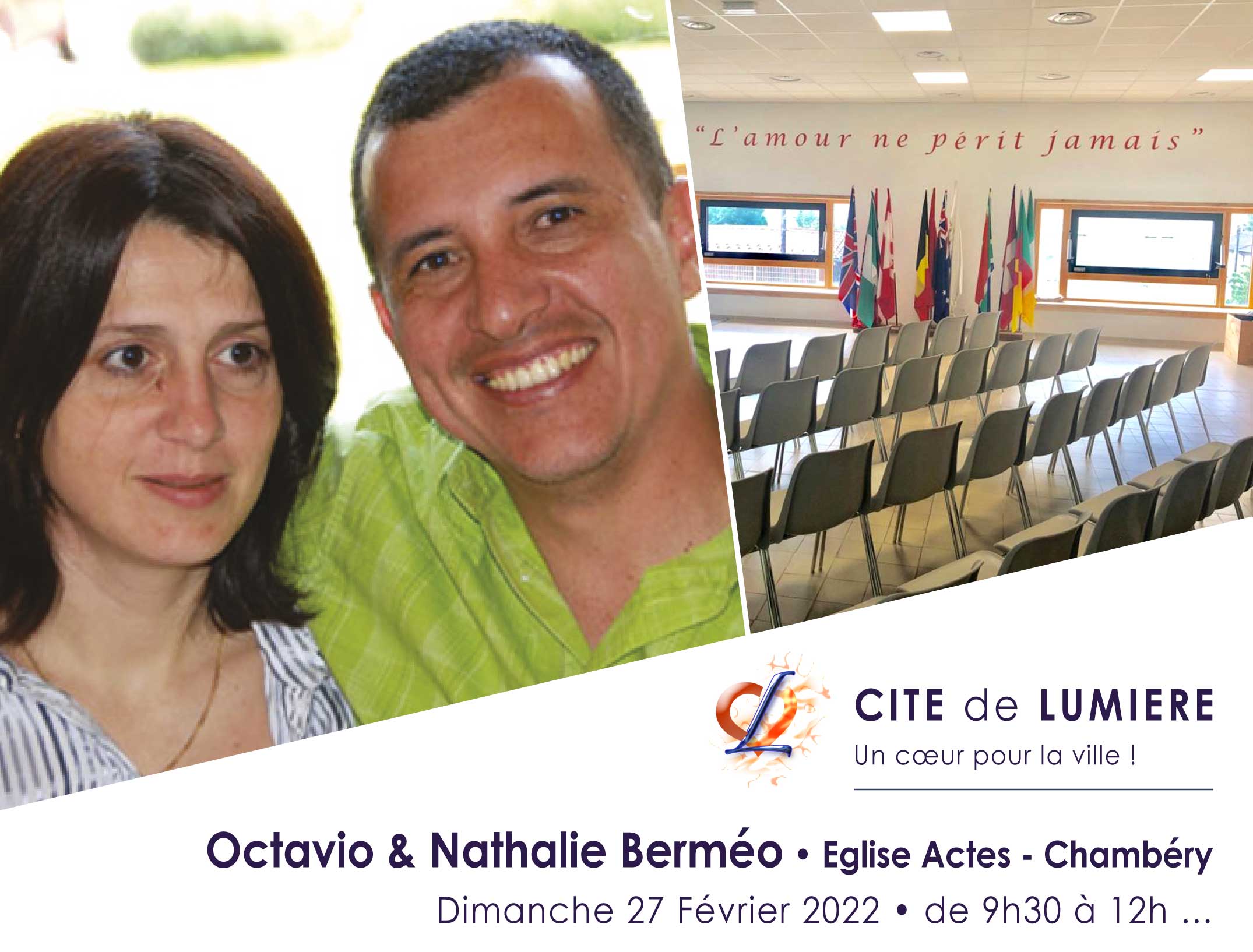 Le Dimanche 27 Février, à la Cité de Lumière, nous recevons Nathalie et Octavio Berméo Pasteur de l’Eglise ACTES à Chambéry.